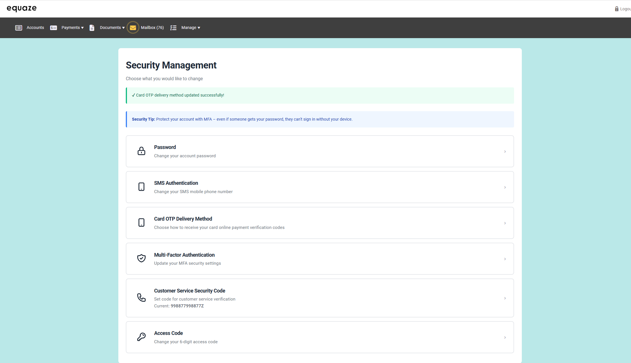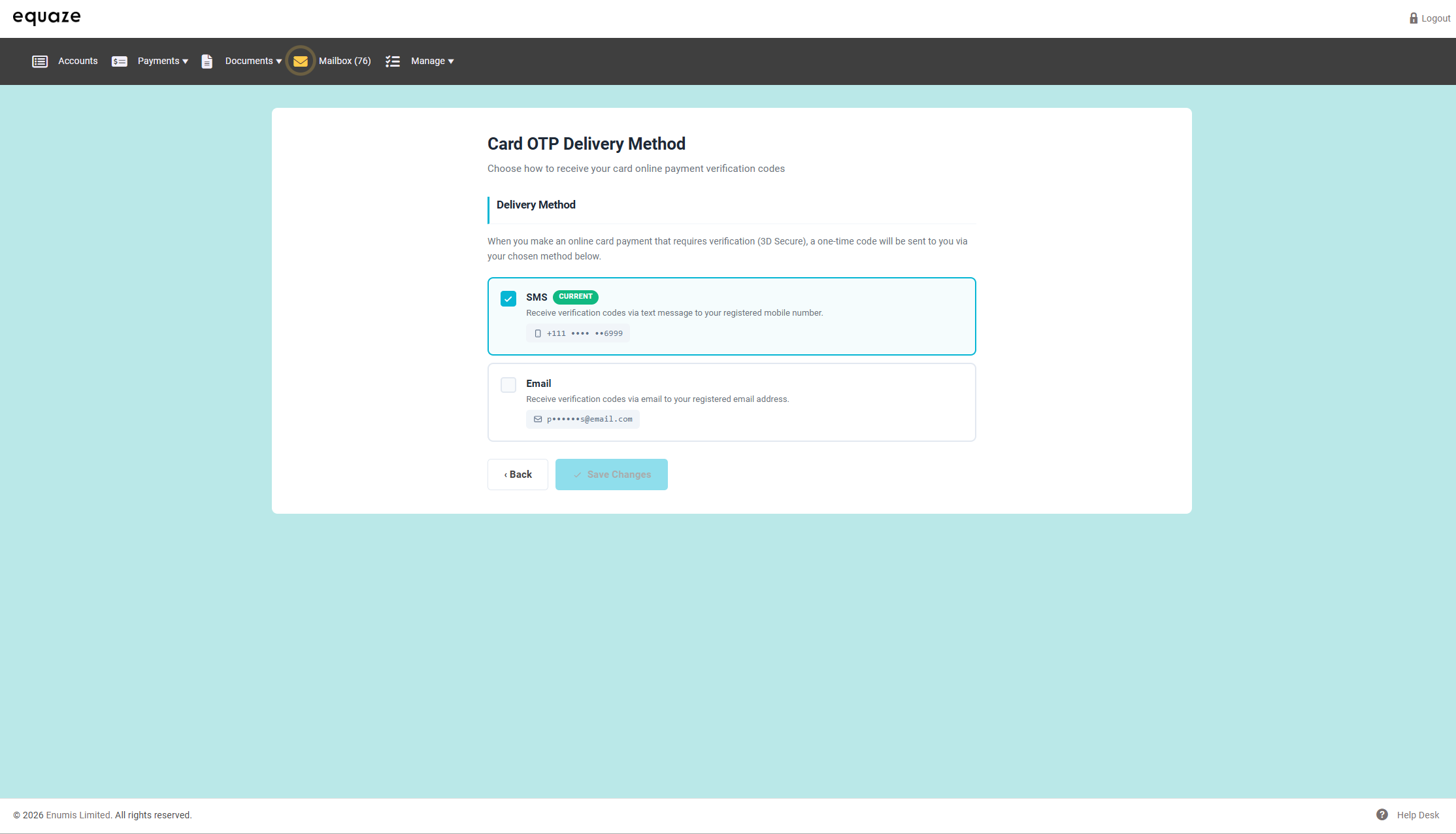 At this point, the Card OTP Delivery Method has been successfully updated.