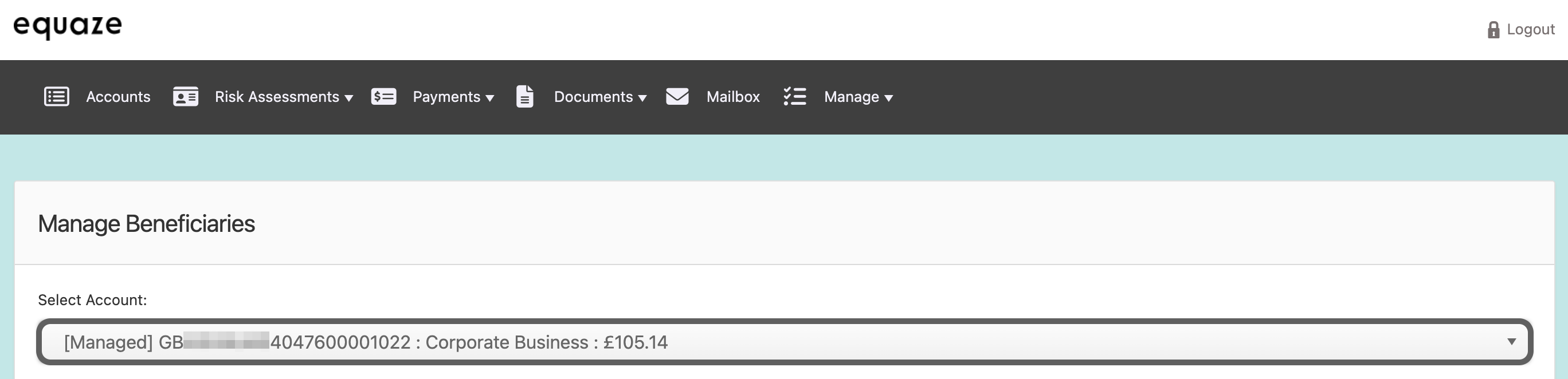 Click on the “Select account” dropdown list on the “Manage beneficiaries” page.