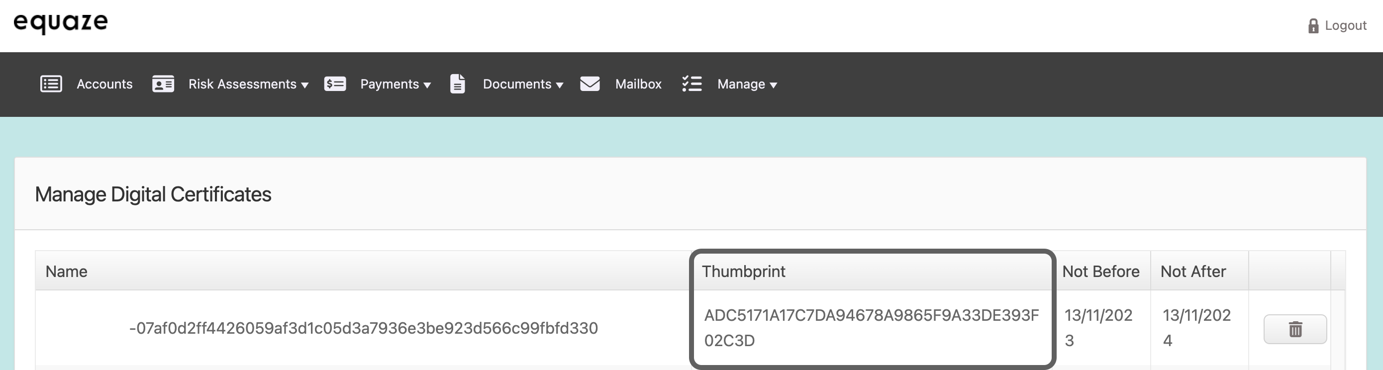 Locate the “Thumbprint” associated with the certificate you just generated.