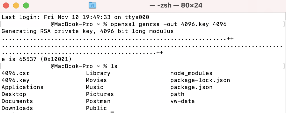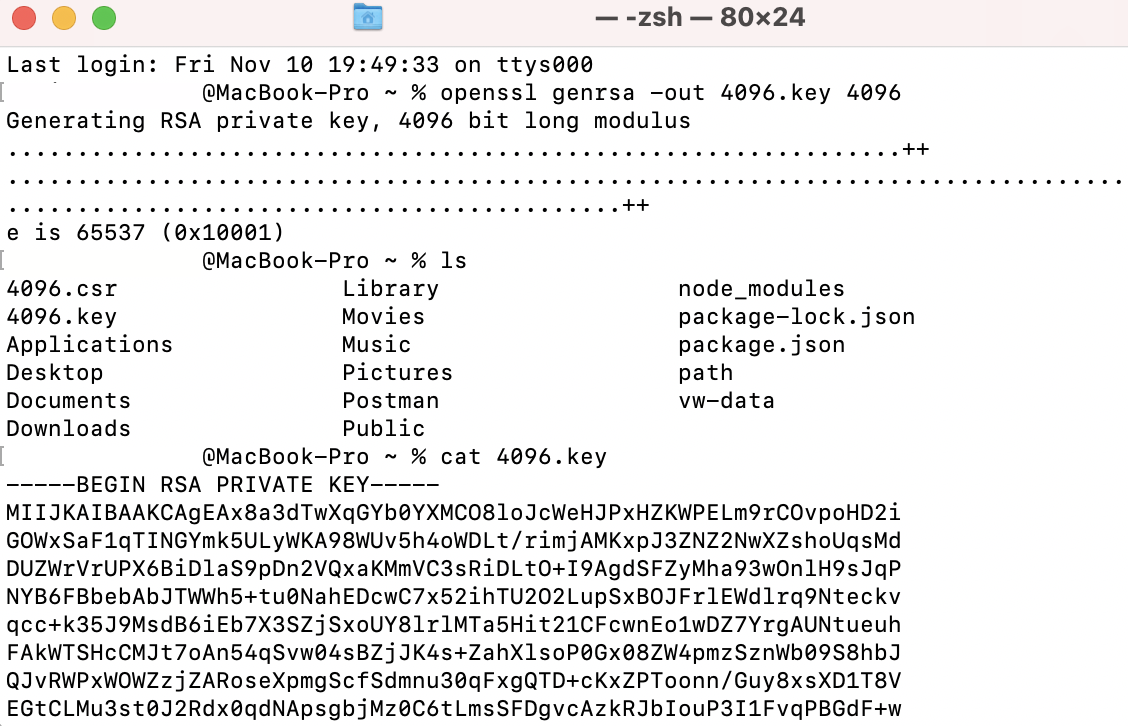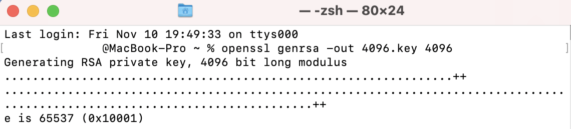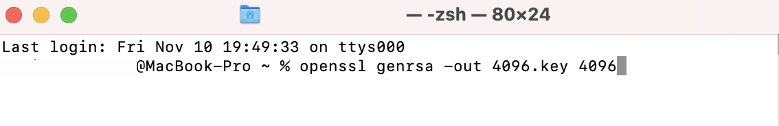 In the Terminal, type the following command: openssl genrsa -out 4096.key 4096.