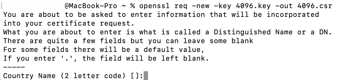 Type the command openssl req -new -key 4096.key -out 4096.csr and press “Enter”.